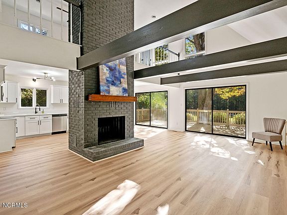 STUNNING PROPERTY!! The A-frame design is a rare beauty in this area, offering both cozy and airy vibes. Nestled on 10 serene acres, complete with a pond, versatile barn, and NO HOA or deed restrictions. This almost 2100 square feet gem offers both privacy and convenience, with easy access to Flowers Plantation, Smithfield, Raleigh, and UNC Hospitals, all just a short drive away. The Charm and Character of this Home are Evident as soon as you step inside, with New Flooring, Fresh Paint, and Stylish Light Fixtures throughout. The main level features a gorgeous, updated WHITE kitchen, equipped with Quartz Countertops and New Stainless Steel Appliances—perfect for any chef. Step into the 2-story family room and experience the open, Full Masonry wood-burning fireplace, a Floor to Ceiling centerpiece visible from all four sides, embodying the warmth and rustic charm of this rare Architectural Find. The main level also boasts two spacious bedrooms, a full bath, and a large laundry room, while the upper level features a Nice Sized bedroom and bath along with a large loft area overlooking the family room, ideal for a home office or additional living space. Outside, Enjoy a Front Deck that overlooks the peaceful surroundings. An old block horse barn with stable provides plenty of potential to convert to suit your dreams—whether for animals, storage, or a creative workshop space. With ample space for gardens, pastures, or outdoor recreation, this property is ready to be tailored to your desires. Come explore the serenity and versatility of this one-of-a-kind A-Frame home—perfect for those seeking a balance of nature, charm, and modern updates.