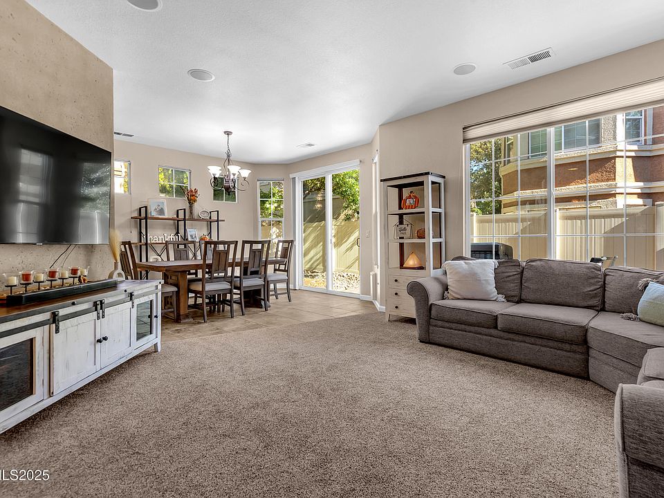 Discover the charm of Damonte Ranch with this beautifully cared-for 3-bedroom, 2-bath split-level townhome designed for both comfort and style. The main floor welcomes you with a bright open-concept layout, where the kitchen flows seamlessly into the living and dining areas, creating the perfect space for gatherings. Step outside to a low-maintenance backyard framed by mature trees—your own private retreat for relaxing or entertaining. Upstairs, a spacious loft offers endless possibilities for a home office, play area, or creative space. The primary suite feels like a getaway of its own, complete with an extended sitting area ideal for reading, exercise, or simply unwinding. With the laundry room conveniently located upstairs, everyday living is a breeze. The HOA maintains the front yard landscaping, trees, and shrubs, ensuring beautiful curb appeal throughout the community. Enjoy move-in ready living in one of South Reno's desirable neighborhoods! SELLER WILL NEED 1 HOUR NOTICE PRIOR TO SHOWINGS. NO SHOWINGS ON MONDAY'S