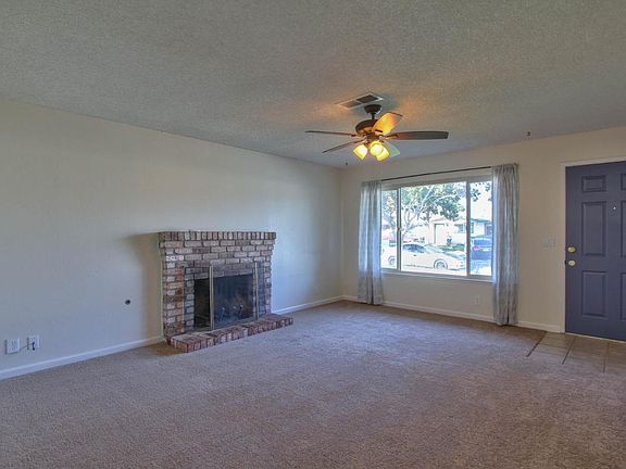 Rarely available 4 bedroom patio home. Attached by the garage only, this private home has been freshened by the original owner. New paint, carpet and kitchen flooring. Seller will credit towards new counter tops to complete this great house. Low maintenance back yard. Relax by the brick fireplace while enjoying all this family home as to offer.