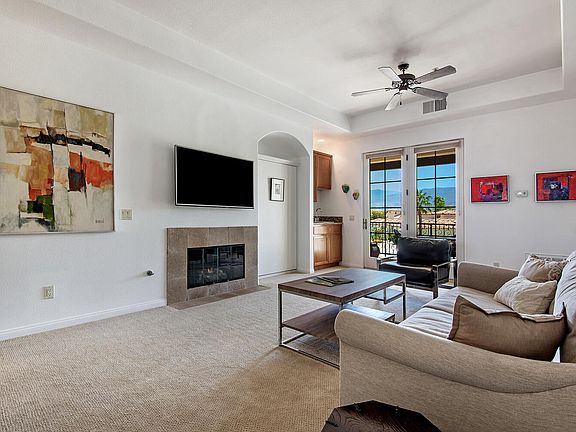 Best located second floor one bedroom at Villa Portofino with South Facing Mountain view. This functional home is enveloped in light and comfort. Crisp white walls, oversized South Facing balcony with unobstructed mountain views. Travertine floors in kitchen, bath and entry, fireplace, granite countertops, SS appliances, tons of maple cabinetry in kitchen and walk in closet with organizers in bedroom, dual vanity in bathroom and separate soaking tub and shower. The volume ceilings create a style as timeless as the dramatic mountain views. Your HOA includes access to the 30,000 square foot clubhouse with bistro, fine dining, movie theater, gym, yoga studio, billiards room and complimentary yoga, zumba and tai chi classes. Must see in person to fully appreciate the Southern Mountain Views. Wake up to a view of the mountains in the morning. Just two other one bedroom units have a similar view at Villa Portofino. Rarely are these units offered for sale.