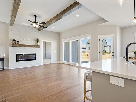Amazing new home by Titan Custom Homes, LLC. Foyer has a beautiful wood feature in the ceiling box vault. Great room has soaring ceilings with wood box beams, tall windows, & beautiful linear fireplace. Kitchen has an island, quartz counters, wall oven and microwave, gas cooktop, & large walk-in pantry. Boot bench is next to garage entrance. Dining/breakfast room has built in cabinets with floating wood shelves above. The primary suite has a great window seat and amazing feature wall in the bedroom, and double vanities & an amazing walk in shower with bench seat in the bathroom. The large walk-in closet also connects to the laundry room. 2nd bedroom on main level is large and has double door closet. Builder has decided to finish the basement and you can pick the colors! The finished space comes with a large family room, 2 amazing bedrooms, and a full bathroom. There is still plenty of unfinished space for all your storage needs.