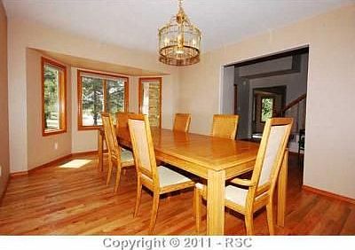 Large 6 bedroom two-story in move-in condition! Beautiful hardwood floors have recently been refinished. Huge Master suite has a private 5-piece bath with new custom tile. Bay windows in living room, dining room & 2 bedrooms. All bedrooms have closet systems & cable! Main level office has 2-sided fireplace & french doors. Lower level walk-out great rm can serve many functions! Has wet bar with fridge included. Lower level has two more bedrooms and a full bath! Stucco & brick home is on quiet treed lot & backs to Woodmoor open space. Dual furnaces, dual water heaters, central vac, TWO laundry rooms! RV/boat parking! To view the interactive floor plan, go to http://www.homesight.net/rss/tours/index.phpid=21191