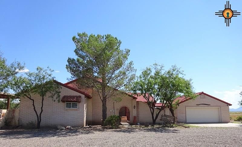 Open Spaces, views all around, in Deming, New Mexico but close to Las Cruces via Int 10. Over 2500 sq.ft. of Hacienda style living. 2 Bedrooms, two baths plus guest room with 1/2 bath. Eating bar kitchen, formal dining room w/fireplace, Living room w/fireplace and HUGE Master Suite w/fireplace. Old Spanish tiled floors, several covered patios, large open party patio. Horse barn, corrals, 2 car att garage, 2 car det. garage. On 40 ACRES w/two wells, one domestic, one stock. Gated & fenced.