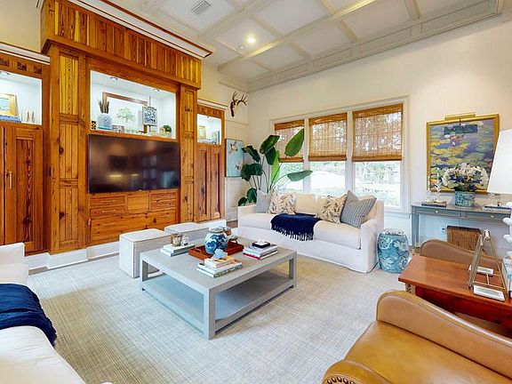A custom-built home that perfectly blends luxury, craftsmanship, and country living. Situated on 22.56 acres just minutes from town, this property offers the peace and privacy of rural life with all the conveniences nearby. From the moment you step inside, you'll feel the “WOW” factor. This stunning home features 3 bedrooms, 2 full bathrooms, and 1 half bathroom, plus an additional room that can serve as a fourth bedroom, home gym, or office. The spacious living room is a showpiece, with soaring coffered ceilings, heart pine cabinetry, and a built-in bar with a marble countertop and wine cooler. Custom doors and fine finishes are found throughout, showcasing the attention to detail that makes this home truly one of a kind. The kitchen is designed for both style and function, offering abundant cabinetry, granite countertops, and a gas cooktop—perfect for the home chef. The large master suite is a private retreat, featuring a cozy sitting area, gas fireplace, and a loft space ideal for reading or a creative studio. The master bathroom feels like a luxury spa with split vanities, custom cabinetry, a soaking tub set in a teak and copper base, and a beautifully tiled walk-in shower. Additional highlights include a six-zone HVAC system for year-round comfort and a charming side cottage that offers endless possibilities—whether you need a home office, man cave, guest space, or extra storage. The cottage also includes its own garage and a breezeway connecting it to the main home. Step outside to your own backyard oasis featuring a sparkling saltwater pool with a waterfall, surrounded by picturesque views of the property. Large windows throughout the home fill every room with natural light and allow you to take in the beauty of the surrounding landscape. If you've been searching for a custom home on acreage close to town, this is the one you've been waiting for. Schedule your personal tour today and experience all that this exceptional property has to offer.