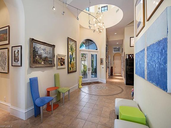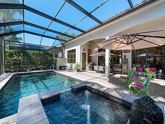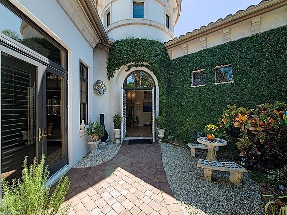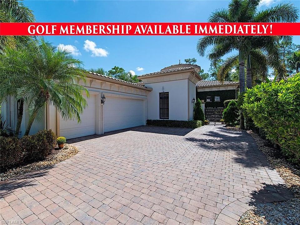 GOLF MEMBERSHIP AVAILABLE IMMEDIATELY! A lushly landscaped private courtyard leads to a grand cupola foyer, greeting each visitor with grandeur in this elegant villa. Sensational architectural & designer appointments include soaring volume ceilings, crown molding, plantation shutters, stunning light fixtures and gorgeous flooring tile with mosaic accents. A stunning wine room serves as the perfect gathering place for family and friends. Stainless steel GE Monogram appliances, rich raised panel wood cabinetry, gas stovetop, granite countertops and delightful breakfast bar are found in the chef's kitchen. Large stacking sliders allow for seamless indoor to outdoor entertaining just off the formal dining room and stunning great room. Retreat to the master suite featuring large his and hers walk in closets, expansive picture windows with lush preserve views and direct outdoor access. Outdoor living and entertaining possibilities abound in the expansive screened lanai. A custom paver deck surrounds the sparkling pool & spillover spa. Serene tropical preserve views.