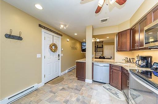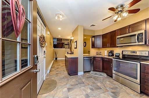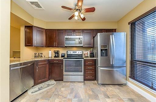 Move right into this 2 bedroom and 1.5 bathroom townhouse! Enter to the ground floor with a beautiful kitchen that boasts new stainless steel appliances, granite counter tops, recessed lightning, and wrap-around cabinet storage that goes into the formal dining room. The family room is on the 1st floor with
