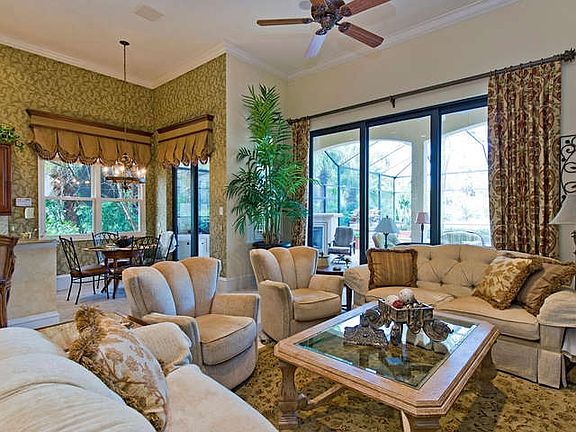 18112 Lagos Way. FORMER FURNISHED MODEL with incredible long lake views - one of the longest in all of Mediterra! Enter through an ornate iron gate into a private courtyard with a water fountain. This 3 bedroom plus office detached villa with a 3 car garage has a formal living room and family room. The eat-in kitchen has a breakfast bar and butler's pantry with wine cooler. The custom pool and waterfall spa have several water displays accentuating the beautiful view. The covered lanai area has an outdoor kitchen with grill and sink and a gas fireplace.The prestigious Mediterra Golf and Beach Club community offers nearly 1,700 acres of residential and open areas reminiscent of a classical countryside. Multiple levels of club memberships are available. The resort lifestyle beckons you with its amenities and activities. 36-hole Tom Fazio-designed golf course, Har-Tru tennis courts, state-of-the-art fitness center, private beach club right on the Gulf of Mexico. Everything you need to enjoy this picturesque community.