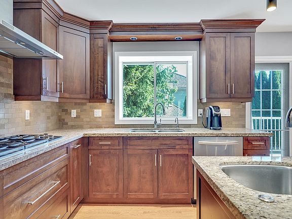 First time on the market in years! This well-kept home has been lovingly maintained by long-term owners and is the perfect family residence. Upstairs features vaulted ceilings with exposed beams, a cozy gas fireplace, and a stylish kitchen with a large island, gas range, built-in bar, and stainless steel appliances. Renovated 10 years ago with updated kitchens and baths. The home offers 3 bedrooms and 2 baths, plus a den/office and a bright 1-bedroom vacant suite with private side entry—ideal as a mortgage helper or in-law suite. Enjoy a sunny, south-facing private backyard in a quiet location near future SkyTrain, schools, shopping, and transit. A/C, newer furnace, 2-car garage, RV parking, space for 9 vehicles, and built-in vacuum complete the package! Open House Sat July 19 2-4pm!