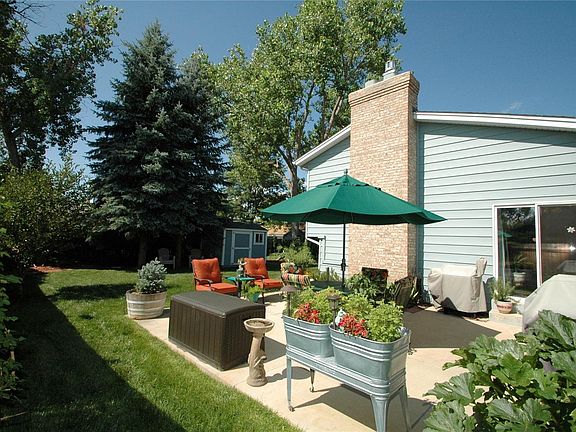 Easy living in this clean, well-loved, & cared for home. Save $ on future maintenance costs owning this home w/upgraded low-maintenance steel siding, gorgeous brick, newer impact resistant roof shingles, newer upgraded windows, gutters & downspouts, new insulated steel garage door, newer efficient furnace, central air conditioning & water heater, Radon mitigation system, & finished garage. Relax & enjoy Colorado outdoors in the beautiful backyard patio w/privacy, mature landscape, speakers, sprinkler system front & rear with drip system, and 8' x 10' Tuff Shed. A delightful kitchen with upgraded stainless steel fridge, range, microwave & dishwasher, pantry, island, roller bearing drawers & roll-out cabinet shelves, new sliding glass door to patio and 4 Natural Sun Light Solatube solar lighting. Family room is cozy w/98% efficient gas fireplace that warms the home. Large master bedroom w/walk-in closet. Carpet Allowance. New Recreation Center has state-of-the-art amenities & wave pool
