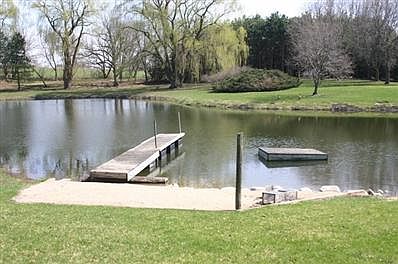 A Setting for a Lifetime or Just on Weekends!!! 13 acre secluded hideaway on a 1.5 acre spring fed pond! 3/ 4 bedroom rustic hillside contemporary, 2 stall horse barn w/ shop and dog runs. 2 fireplaces, wet bar, views & loads of perennials and paddocks. Minutes from the northwest train line and Lake Geneva.