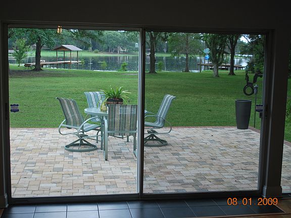 Very well built, low maintenance. Has a wood burning fireplace and back wall that faces the lake and dock is all glass. Has a boat ramp, and permitted beach on the lake. The house has a private easement to enter the properry from Spencer Road and another from Tarpon Springs Rd. the front of the house faces a large almost 5 acre field where many activities can take place, from weddings, bonfires, soccer, football, camping or just for your horses. Large oak trees bring a peaceful park like setting.