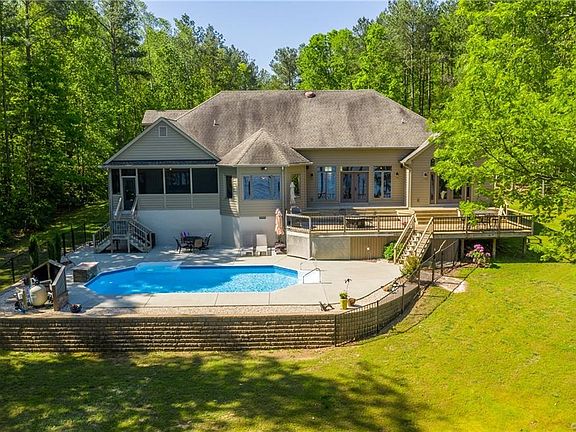Custom Built Home with 450 foot of lake frontage on LakeChesdin. Everything is done and ready for you to enjoy in this well appointed home. I have the pleasure of viewing this home and it is a true master piece! I suggest reviewing the video and upgrade list the Loving Sellers have provided. I feel my comments will not do this home justice! I was amazed when I walked through the front door, looked to my left through the Master bedroom entry to see Whippernock Creek, and then the Main Lake in front of me through the Living Room Windows. It is a awesome View! Then I turned to my right and there was the Kitchen. I spent 30 minutes in the kitchen with the Seller showing me every option the cabinet designer installed for them. I recommend you open every drawer in the kitchen and check it out! The Master Bedroom and Bathroom have water views, Vaulted/Tray Ceilings and the largest 3-headed shower I have ever seen along with a jetted tub and extensive walk in closet with cabinets and shelving. There is a stunning Custom Spiral Stair Case to the upstairs. The House also has a second staircase from the attached garage to the second floor Potential in law suite, in ground 16X32 Pool.
