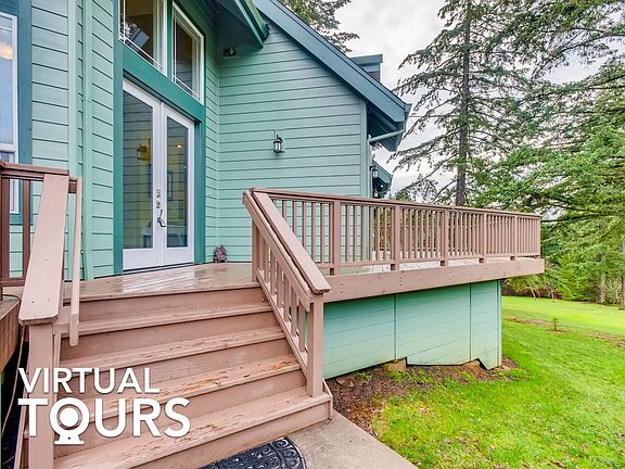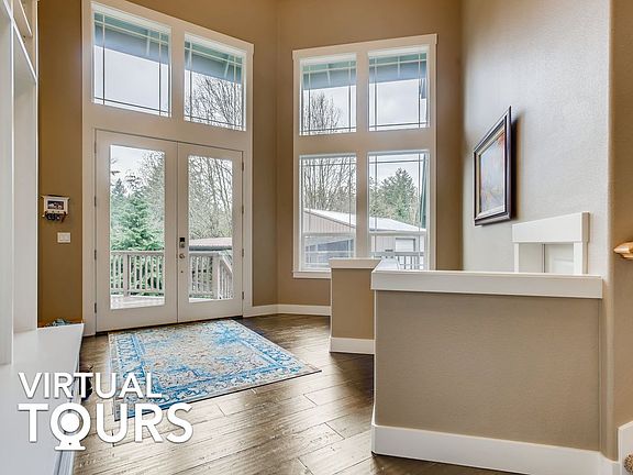 Immaculate, move-in ready home with 5 bedrooms, 4 bathrooms, and 3,548 sq ft sitting on 4.6 acres! Highlights include a gourmet kitchen, tall vaulted ceilings with great natural light, luxurious primary suite, finished walk-out basement, and separate guest quarters above garage. This gorgeous, private home boasts incredible design features throughout, including the chef's kitchen with its granite countertops, sleek white cabinets, huge center island with breakfast bar seating, tile backsplash, and expansive dining area with backyard access. Open concept design flows into the gleaming living room with two-story vaulted ceiling, floor-to-ceiling windows, and hand-scraped solid oak wood flooring. All bedrooms have great size, including the primary suite with a spa-like bathroom featuring walk-in closet, dual vanity, grand walk-in shower, and elegant Victoria + Albert freestanding soaking tub. Enjoy additional living and hosting space in the finished walk-out basement that has its own full bathroom and wet bar plumbing. Guests or potential renters have their own secluded space with a one bedroom, one-bathroom guest house located above the homes 3-car garage. Backyard is the perfect place to entertain with its spacious wood deck, lush lawn, towering trees, and firepit. Additional features include an unfinished barn with electricity, central vacuum, 4-zone heat pump, and sound dampening insulation, in addition to a 36x24 shop. Great location that provides rural seclusion, without giving up nearby amenities. Just 10 minutes from Oregon City, shopping, grocery, and recreation. Come fall in love with this home. Schedule a showing today! Buyer should verify all information.