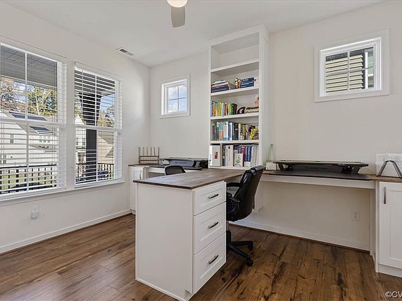 Built in 2022, welcome to this delightful farmhouse inspired gem in the heart of Magnolia Green & just steps away from Moseley Elementary! The aesthetic of this home is both rustic & chic as you are welcomed by barnwood columns on your full front porch, board & batten siding & a stylish metal awning. Open the custom front door to find an airy office w rich LVP flooring & functional built-ins, ideal for homework too! The open-concept living rm boasts LVP flooring & recessed lighting leading you to the sunny kitchen/morning rm. Cook like a pro in the luxurious kitchen complete w granite counters/tile backsplash, an oversized island w bar seating, gas cooking, SS appliances, W/I pantry & pendant/recessed lighting. HW steps lead you to an expansive primary suite flaunting a distinct tray ceiling, plush carpeting, CF, W/I closet & luxury bath. 3 additional bdrms offering large closets & CF's plus an upstairs laundry round out the 2nd floor. Enjoy a 10x14 deck for the grill master, 2 car garage, fenced backyard & irrigation. MAGNOLIA GREEN HAS AN ARRAY OF UNBEATABLE AMENITIES TO INCLUDE AN AQUATIC CENTER, WALKING PATHS, CHAMPIONSHIP GOLF, SOCIAL ACTIVITIES, TENNIS & A FARMERS MARKET.