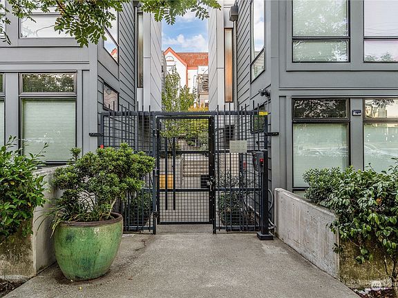 25 On The Park, a gated townhome community located at the epicenter of Capitol Hill, across from Cal Anderson Park. Only 2 blocks to Link Light Rail and your connection to the entire city. Tucked in the back of the community, this corner unit townhome enjoys two rooftop terraces for outdoor entertaining. The main level features a beautifully crafted steel staircase, bamboo hardwood floors, island kitchen, and patio space perfect for BBQ’ing. The second level is comprised of an ensuite bedroom with adjoining den. The sumptuous top level primary suite boasts high-ceilings and clerestory windows flooding the space with natural light. Western views offer endless sunsets with the Seattle skyline as your backdrop. 1 secure parking garage space.