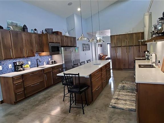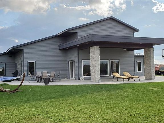 This modern one level home was custom built by the builder for his own family and the upgrades & extra features are endless!!! The home has an amazing location & sits on 5.25 acres with plenty of room in the yard for children & pets to play. It is just minutes from Main Street, Schools, Medical Facilities, Hwy 53 access & Turtleback Golf Course. There are 5 bedrooms, 3 baths, a nice office, a kids play room or exercise room and a nice sitting room all located on one floor with in floor heat in addition to a F.A. furnace and central air. The exterior walls are (ICF) insulated concrete form to make this home very quiet, safe and energy efficient. The windows are triple pane, the kitchen counter tops are quartz, there is a sound system in the home and also on the large back patio area. The attached 28' X 48' garage is finished & heated with over 10' sidewalls. The interior walls are all 9' with the master bedroom and living, kitchen & dining room all having large vaulted ceilings.