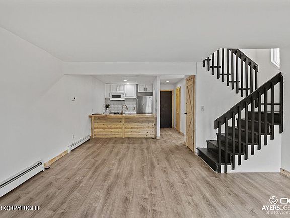 KENAI TOWNHOUSE! 1,011 sq ft 2 bedroom 1.5 bath with an attached 1 car garage PLUS a fenced backyard & shed. The main level has an open concept layout with the living room, wood stove, kitchen, and half bath. The upstairs features two bedrooms plus a full bath. 2019 updates throughout and just waiting for your own final touch. SO MUCH POTENTIAL!