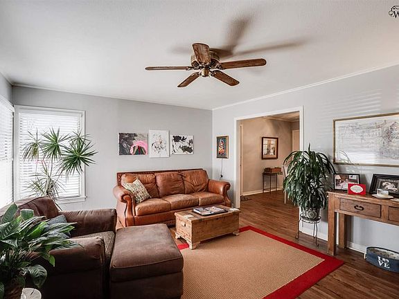 Nicely updated 2 bedroom, 1 bath, 2 car garage home in Brook Village addition! Recent updates include commercial grade vinyl plank flooring, texture/paint & blinds throughout. This home offers great storage & beautiful built-ins. Fantastic 24 X 14 workshop that was built in 2004 & provides heating & air conditioning, rough-in plumbing, 11 X 24 covered patio & it's on a separate meter from the house. Backyard also features a large covered patio & storm cellar. Move in ready!