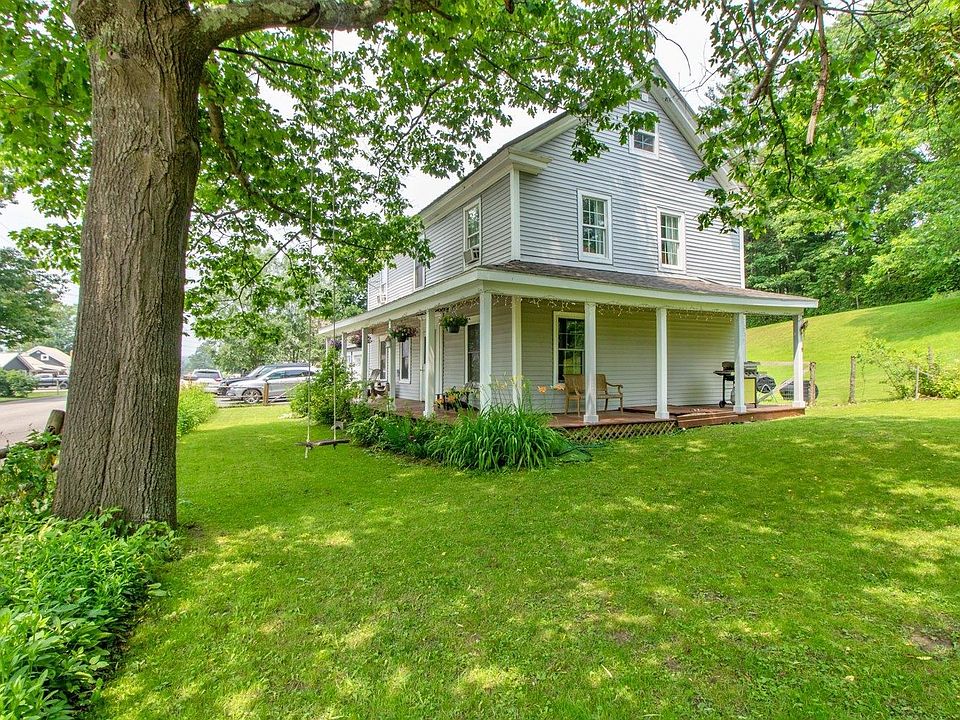 Welcome to Morristown, VT where this 3 bedroom, 2 bath home finds itself in the heart of an abundance of recreational activities. Built in 1850, this farmhouse has had many improvements such as new siding, roof, windows, and kitchen just to name a few. Park in the 2-bay garage, then walk into the mudroom and drop your gear before stepping up into an open kitchen/dining concept complete with granite countertop and stainless-steel appliances. The living room offers the charm of the original post and beams, plus the warmth of a wood-burning stove for a chilly day. An office/playroom is positioned adjacent to the living room, with quick access to laundry and a full bath opposite. Up the stairs, a 3/4 bath, 2 bedrooms, bonus room, and a primary bedroom with sitting room, walk-in closet, and balcony access await. Need to unwind after a long day? Sit on the cozy balcony looking onto the backyard, tree house, and the LVRT (direct access) or head downstairs for some front porch sitting where you can read a book and enjoy bird song and the view of the low-maintenance landscaping that surrounds you. Scents and sights of lilac, azalea, hydrangea and more will hit you, while your tastebuds will appreciate the fruitful harvests of the raspberry, blueberry, and blackberry bushes. Or, simply, unwind in the custom-made hot tub after a long day on the Cadys Falls Mtn. bike trails, the Cricket Hill trails or the Gorge! Close to Copley Hospital, shopping, cinema and more. ACCEPTING BACK-UPS!