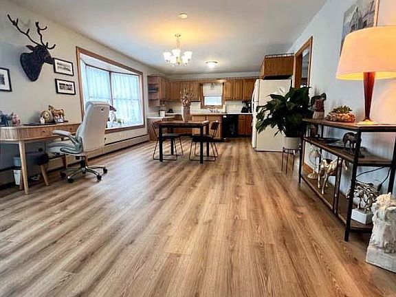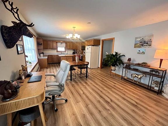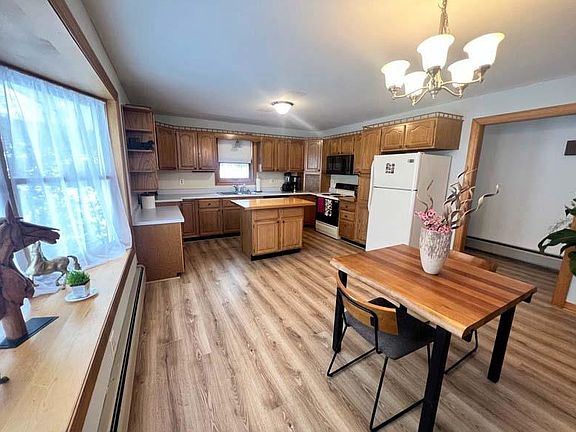 The open concept design of this delightful three bedroom, two bathroom ranch offers modern spaciousness and flexibility. The home features an abundance of natural light from every room, neutral colors, and beautiful new flooring throughout. There are two decks, one off of the living room and one off of the back of the house to enjoy the beautiful long range mountain views. The open concept kitchen, dining room and living room are the center of the home. Enjoy cooking a meal in the roomy kitchen with great counter space and a center island, while socializing with guests in the dining or living room. The ensuite primary bedroom is conveniently located on the first floor, as well as a second bedroom, and a ¾ bathroom with laundry. The third bedroom is located in the partially finished basement. The large unfinished section of the basement would make a great workshop or has potential for additional finished living space. The convenience of a paved driveway and attached two car garage with direct entry to the home's mudroom are an added bonus! Attractive landscaping maximizes the value of the expansive, flat yard with beautiful mountain views. Outside, you will also find a 35x20 outbuilding. The inside is equipped with electricity, it is insulated and has wood heat. Underneath that section there is a large covered storage space, as well as a lean-to off the side. Bring your vision to life with all that this fantastic home has to offer! Delayed Showings start Saturday 2/3