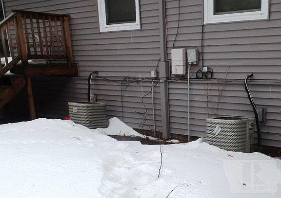 side-by-side duplex. Raised ranch style with front and rear decks. Each side is two bedroom one bath with a family room, bonus room and bath in the lower level. Electric heat and central air. Washer and dryer hookups in the lower level. Attached two car garage.