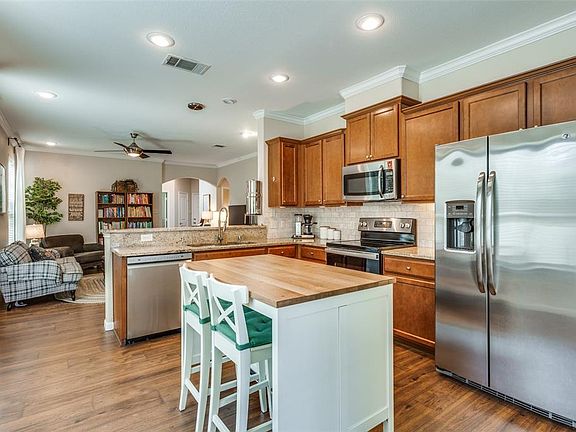 You will FEEL at home here. Enjoy the peaceful VIEWS of neighboring farm land from the front porch. Super clean, open-concept space with granite C-Tops in the kitchen, luxurious NEW floors (scratch proof and waterproof), NEW stove, and NEW dishwasher. Home has front and back porch and large back-side yard for neighborhood. Garage has storm-safe room and extensive built-ins. ALL the neighborhood amenities: Clubhouse with banquet room rentals, fitness center and water-themed park swimming pool with slides, beach entry, 4 children's pools and one adult pool. Come quick!