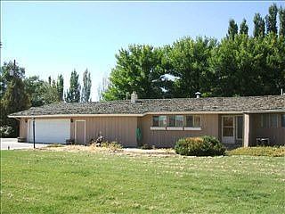 Beautiful ranch style home on a gentleman's acreage to be split from this farm to include newly remodeled kitchen with granite counter tops and deep cherry wood cabinets, pull outs and built-ins, bright sunny windows throughout. New bathrooms with granite, large master with dual closets and walk-in shower, large family room downstairs. Can purchase more or less acres with price adjustment. Farm is negotiable. Water shares are negotiable. Bring your horses! RV Parking. Nice access, close to town.