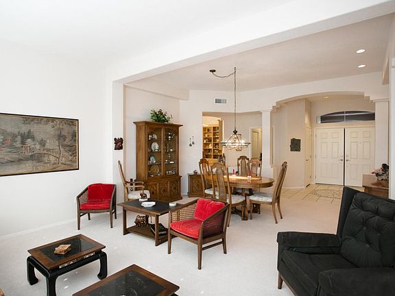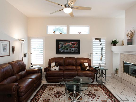True pride of ownership is reflected in this beautiful Mountain Views model home. Extended brick patio w/ Catalina Mtn views, plantation shutters throughout, gorgeous updated kitchen including granite counter tops, upgraded pull-out Maple cabinets & canned lighting, split bedroom floor plan, built-in desk & shelving in den, double sided fireplace in AZ room off the kitchen, new roof('16), new water heater('16), electronic heater filter, HVAC less than 10 yrs. old, add'l water heater added to master bath, new smoke alarms('16), epoxy garage floor, driveway/outside entry, inviting front porch w/ gate leading to a double door front foyer. Beautiful, well maintained easy care desert landscaping front & rear. This home is priced to sell quickly in the desirable community of Sun City Oro Valley.