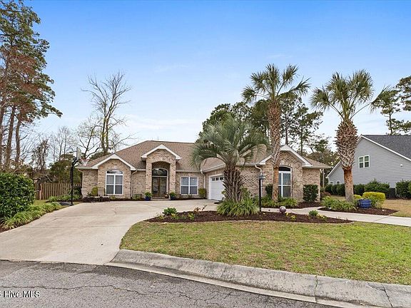 Prettiest home in Brick Landing is now on the market! This 3 bedroom, 2 bath brick home is located on a cul de sac with a large private back yard, huge porch and patio with full OUTDOOR kitchen! Terrific for entertaining with friends or for just relaxing with the family. The open and airy floor plan offers a spacious living area with fireplace and has a lovely dining room open to the living area. An efficient gourmet kitchen with granite countertops, stainless steel appliances, bar seating as well as a breakfast nook by a big window will do you just fine! (The meals that have come out of that kitchen...oh my...fabulous!) The split bedroom plan offers a huge master bedroom with sitting area and opens out onto the porch area - quite delightful! It has a large bath with a soaking tub and shower. The nice-sized other two bedrooms are adorable for children or perfect for guests. This great home also has an office and all of this on one level! A big garage and beautifully landscaped yard are the icing on the cake with this home! Located just minutes from the beach, Brick Landing is a highly sought-after gated golf community with large pool area and bath house. The community also has a gorgeous clubhouse with dining on the Intracoastal Waterway. Views galore! This is a one-owner happy home and is priced to sell at $479,000! Call for a showing!