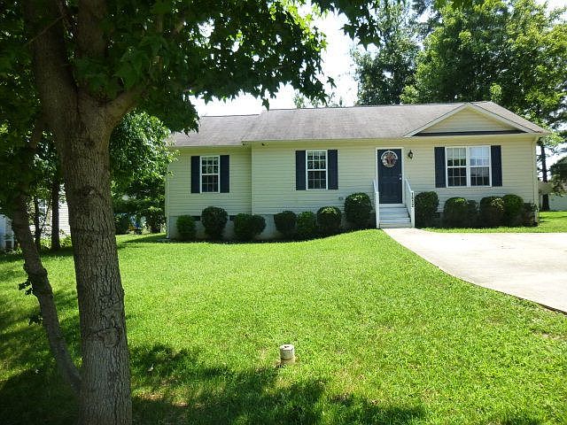 USDA ELIGIBLE! This home is move in ready with fresh paint, carpets and flooring like new...located close to I-85 and shops/restaurants. Convenience and Great Use of Space are the magic words with this wonderful home! 3 BR, 2 bath with over 1,400 sf, this home has great space in all BRs and closets - large kitchen with combined dining area that opens to rear patio, fenced yard and storage bldg. Over sized great room with cathedral ceiling and entertainment niche. This won't last long!!