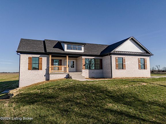 Do you love Goebel Crossings subdivision, have friends or family in the neighborhood but don't want restrictions? This home is for you! Located at the rear of Goebel Crossings and just a short walk or golf cart ride away without the restrictions of a subdivision. Welcome to your new home just minutes to everything while enjoying the peace of country living on almost 2 acres in the Elk Creek area of Spencer County! This new 3 bed, 2 bath all brick home with 2 car attached garage, on a full unfinished walkout basement has it all. Custom Vittitow cabinets, granite countertops, tile flooring in both baths and laundry room, tile shower in the primary bath with a separate soaker tub to relax in after those hectic days, tile backsplash in the kitchen and engineered hardwood throughout the remainder of the home. If you love to cook this kitchen is for you! Microwave/wall oven combo, dishwasher, refrigerator and induction cooktop are all included. Fall is here and Winter is right around the corner, what better time to enjoy the warmth of the fireplace! The basement has a third bath roughed in and awaits your finishing touch. The options are endless with this space. Sit on your porch with your morning coffee and you are sure to see the wildlife that surrounds this area while enjoying the peaceful sounds of nature. With almost 2 acres there is plenty of room for you to enjoy the outdoors. A new home on acreage in this area doesn't come along often, schedule your showing before it's gone!