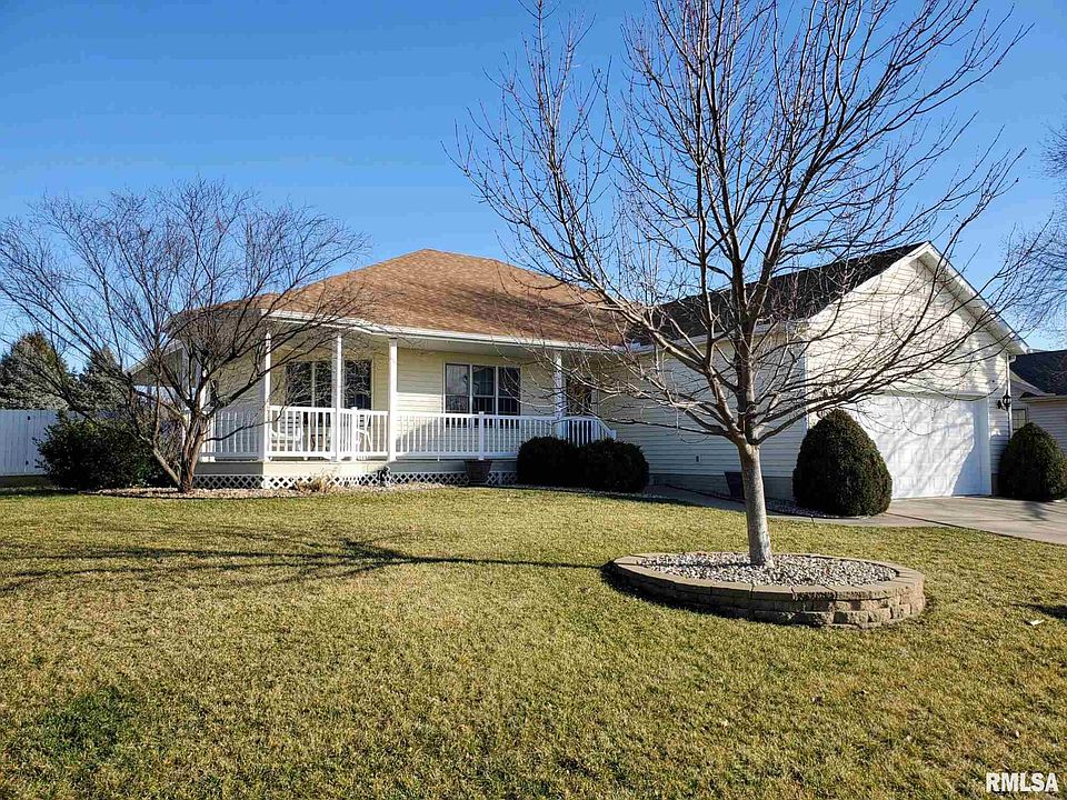 Look no further..stunning and impeccable Deerfield Estates ranch! Excellent curb appeal with inviting wrap around porch that leads to well landscaped fenced in backyard with shed. Lovely floor plan with open great room, lots of windows and sliders to covered deck. Beautiful kitchen with center island and hardwood floors (bar stools and appliances stay). Master en suite has sliders to covered deck, walk in closet and large bathroom. Main floor laundry/mud room conveniently located off the garage. Newly remodeled basement with 3 egress windows offer a large bar, half bath and huge storage room! Roof shingles, gutters, water heater, landscaping all new in 2019, Hunter Douglas easy rise blinds in 2017, etc. Surveillance system stays. Room sizes and sqft. are estimated, not guaranteed to be correct. SQFT. per Tazewell County records.