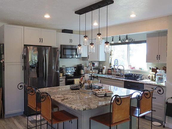 This home is a must see in an established and sought after neighborhood. Take in the mountain views and relax from any of the 3 decks/patios with the peace of mind knowing that your new home has been completely updated. From the exterior you will see new windows, freshly stained siding, beautiful landscaping and 2 storage sheds. Inside boasts a full new kitchen with soft close cabinets, black stainless appliances, granite countertops including a large center island. From the spacious kitchen/dining area you have access to a deck overlooking the valley and big horn mountains. Living room features cathedral ceiling and an open feel into the kitchen and dining area. All measurements are approximate.