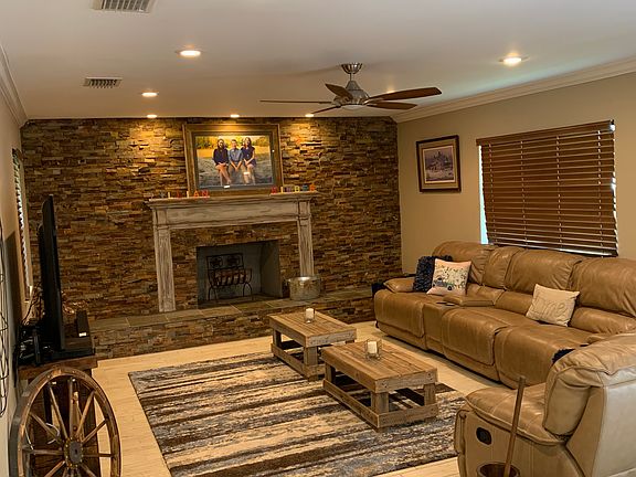 R-BAR ESTATES - Modern 3 Acres HACIENDA! Beautifully remodeled 3 Bd/2 Ba/2 Garage. Spacious foyer welcomes you to this split plan, 2271 Sf under air-3751 TLA. Chef's Island kitchen, granite counters, wine cooler. Great room, open concept, stacked stone fireplace, designer lighting, ceramic plank flooring. 19x19 master suite w/bay window. Metal roof, A/C. Tankless HWH, NEW water softener, gutters. 24x30 Ramada/ barn with concrete floor for entertaining. Grand Oaks, cross fenced for horses. RV parking pad. Four board fencing and circle drive. EXCEPTIONAL! $339,000