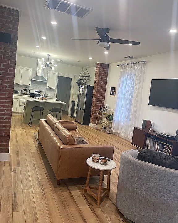 This fully remodeled home in the middle of the Plaza District is perfect for entertaining! New wood flooring throughout the house, fresh paint, a security system with doorbell camera, and a Yale keypad on the front door. The large living room with an open kitchen and island make the perfect spot to host guests. All appliances, washer and dryer, window treatments, porch swing, and outdoor string lights (front and back) are included. The backyard is very large and has a brand-new privacy fence, shed, and modern pavers. The front yard has two large peach trees that produce hundreds of delicious peaches every year in August. Can be rented fully furnished for an additional fee. Contact us for your private showing today! Tenant is responsible for all utilities. Owner provides yard maintenance. No sub-leasing or AirBNB-ing allowed.