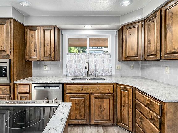 Newly Updated Central Valley Daylight Rancher on Over 1/2 Acre in an Amazing Area to Call Home! Quiet Street, Views, Large lot...What more could you Ask for? The Kitchen Offers Plenty of Counter Space, Island, Pantry & was Just Remodeled w/Granite Counters, New Range, Tile Backsplash, Microwave & has a Newer Bosch Dishwasher. There's Even Washer & Dryer Hook Ups in the Kitchen for the Future if You Wanted to Remove Some Cabinets to Have it on the Main Floor. En Suite w/ Double Sinks, Large Walk in Shower, Walk-in Closet & Slider to Deck. Other Amenities Include: 2 Fire Places, Vinyl Windows, Sprinkler System, Oversized Deck w/ Covered Area to Entertain and Enjoy the Sunsets and Views of the Valley, Large Shed Under Deck, & Forced Air Heating and Air w/Heat Pump. Room for a Shop, Garden, Pool and Much More!