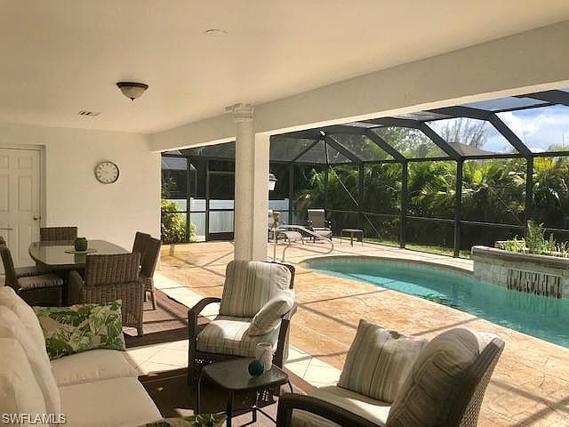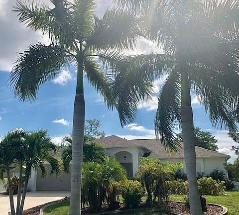 Newly Updated CAPE CORAL Home with Gorgeous Swimming Pool and Deck. Home features an Open Floor Plan with Vaulted Ceilings, Double Foyer Front Doors, Granite Kitchen Counter Tops with Stainless Appliances. Remodeled Master Bath has Recessed lighting, double vanity sinks with granite, walk in shower and poolside entry door. Pool Deck features a custom outside Pool Shower with built-in bench and heated Pool is enhanced with a lovely built-in decorative planter. Tile Floor in the 2 Car Garage and front lawn has very quiet Sitting/Patio area. This home has some really Great Updates and Custom Features!