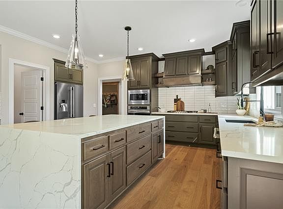 Personalized Build Job by award winning Summit Homes to build their Winchester Modern Prairie Elevation on an oversized Full Foundation homesite in the Reserve at Stoney Creek. 4 bdrm 4 bath w/ unfinished lower level. Covered Patio with no rear neighbors and trees. One of kind 2 story with massive Primary Bedroom with extra sitting room. There is one bedroom or office on the main level with it's own full bath. Giant Chef Style Kitchen with a hidden pantry that wraps around back of the cabinets. Need a little more living room, this one it up and down. Luxury primary suite, Huge corner soaker tub, giant walk in shower, split vanités, his and hers primary closets, laundry attached to the those closets. Secondary bedrooms share a jack and Jill bath, or Bedroom 2 has it's bathroom if you some additional privacy. It's got everything you want in your new home. The community offers residents a new clubhouse, 3 swimming pools with covered cabanas, 3 community playgrounds and a sand volleyball court. The community is located adjacent to Osage Trails Park, offering residents access to additional walking trails, picnic areas, and a playground. This family oriented community is within the Lee's Summit West school district and provides the best of what Lee's Summit has to offer. The Manor at Stoney Creek features sixteen distinctive floor plans, each with multiple innovative front elevation options to choose from. Base prices in the Manor at Stoney Creek include the lot price. The community is just a few minutes’ drive from the charming downtown Lee’s Summit shopping district, three superior golf courses, and scenic hiking, fishing, boating, and camping at both Longview Lake and James A. Reed Memorial Wildlife area. Manor at Stoney Creek is the only place where you will find a variety of floor plans, with the best amenities at affordable prices.