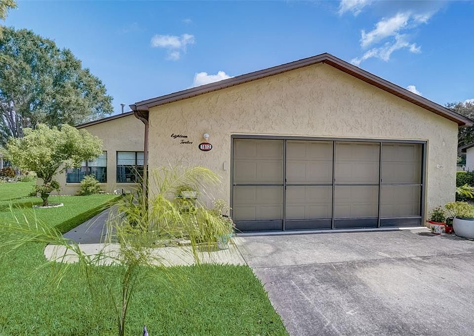 A very well maintained 3bd/2ba home with a NEW ROOF (2023), NEW GAS WATER HEATER (2022) located in the 55+ community of Spanish Haven. As you pull up you'll notice the beautiful landscaping and a screen door on the garage to keep the bugs out when working in the garage. Upon entering the home, you have the kitchen, with some updated appliances, off to the right. A spacious living/dining room combo, as you continue in the home. Multiple sliding glass doors gives you plenty of natural light. Right off the dining area features sliders that lead to the large screened back porch and a breakfast bar overlooking the living room. Living room has stunning high wood beam ceilings. Master bedroom has walk-in closet. Community amenities include pool, clubhouse and shuffle board. This area of Winter Haven is close to shopping, restaurants, hospitals, etc. This home will go fast!