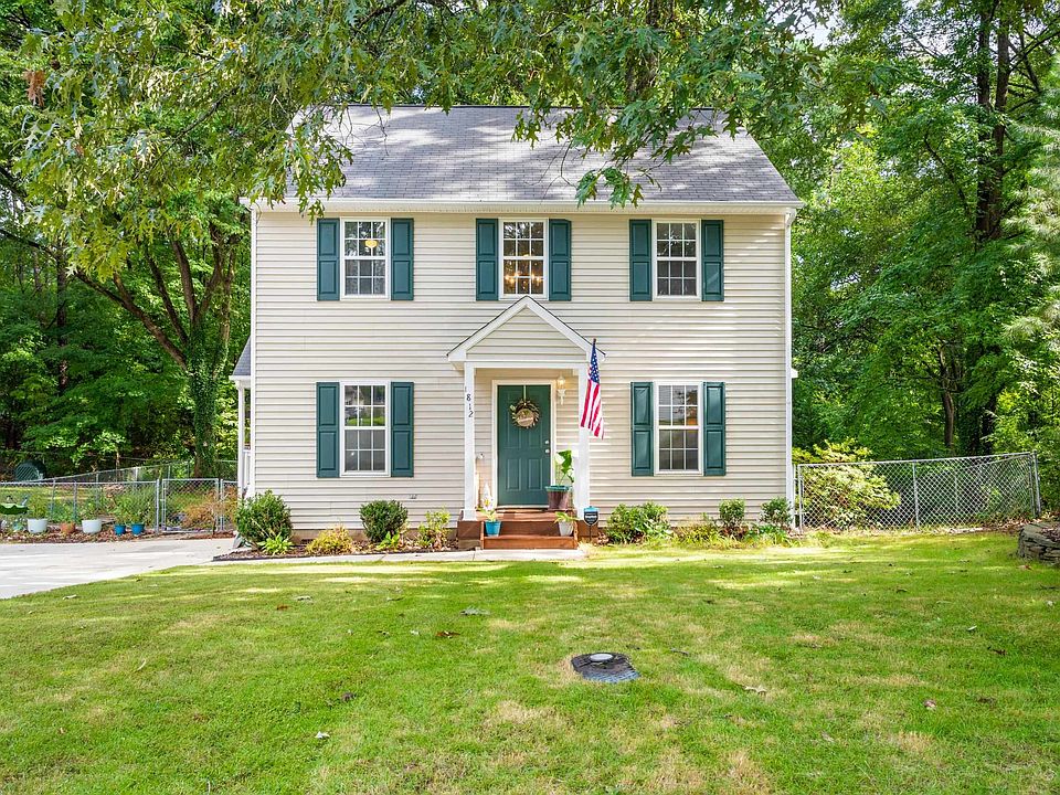 Highest and best July 30th 5pm. Tons of Curb Appeal in This Adorable 3 bd/2.5 ba Home w/ Eat in Kitchen, Ample counter space, & island in kitchen with hanging pot rack. Side entry through kitchen. Separate dining room features custom wall shelving. Large living room w/fireplace & nice deck that leads out to shaded backyard w/slate patio. Outside storage shed on flat lot. Large Primary is separated from additional bedrooms w/ en-suite bathroom and walk in closet! Walking distance to community center w/ gym, tennis courts, dog park & more. Enjoy your morning coffee or evening glass of wine on the covered deck over looking your backyard oasis. Raised garden beds, charming storage building, and mature landscaping. Seller has poured additional concrete to support up to 5 cars.