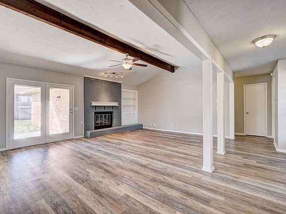 Complete Remodel! 3 bed, 2 bath, 2 car garage, storm shelter and washer/dryer/fridge included! This house boasts an open floor plan with new carpet in bedrooms, new wood-like flooring in entry, living, kitchen, breakfast and hall. The kitchen has plenty of counter space, both oven and range, including a new tile back splash, new updated lighting, and vent hood. Master bath has been completely remodeled with his and hers vanities and closets, separate shower and tub. The whole house, including woodwork, has a fresh coat of paint. Finally, the house includes large covered back and front porches, storm shelter and high efficiency HVAC. This home is now available for lease for one year, short term and/or lease purchase. Please call or text Phil Thompson (405-850-4771) or Cole Thompson (405-464-7125) for more information or to schedule a tour. Application fee $50.00, security deposit $1495. Pets are allowed for an additional deposit.