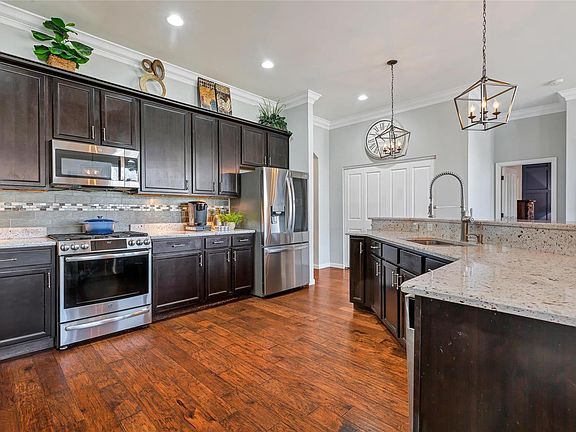 Amazing From The Moment You Walk In. New Entry Custom Stained Glass Entry Door, Foyer W/ Beautiful Wainscoting. Kitchen Features 42 In Cabinets W/ Crown Trim, Solid Counters, Can Lighting, Winged Center Island, Restaurant Style Faucet. Custom Tile Backsplash, New Stainless Appliances, Gas Range, Large Custom Pantry, Under Cabinet Lighting. Main Level Includes Crown Molding, Hearth Rm W/ Gas Fireplace. Freshly Painted Throughout, New Lighting & Ceiling Fans, Plantation Style Shutters, Custom Built Bookcases, Custom Mantel, Wood Floors, Master Bedroom Has Custom Batton Board Accents. Master Bathroom W/ Separate Tub/Shower, Updated Guest Bath. Mudroom/Laundry Room W/ New Sink & Flooring. Updates Include Newer Carpet In The Bedrooms & Level Level. Walk Out Lower Level, Includes Spacious Family Room, Game Area, Bedroom & Full Bath, & Ample Storage. Exterior Features Include, Oversized Garage, Covered Front Porch, Vinyl Siding, Stone Veneer Accents, 2 Patios, Low Maintenance Covered Deck.