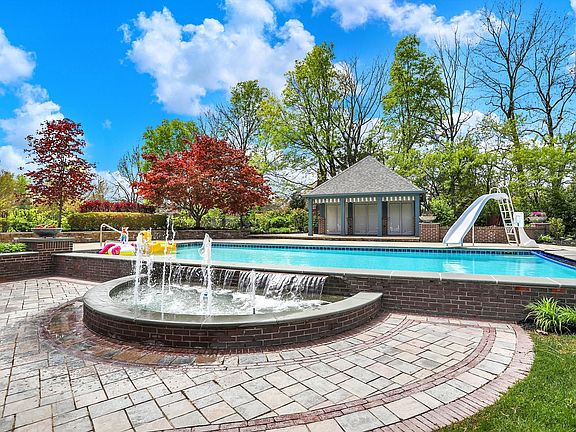 Stylish and spacious, this home in a gated community and impresses from the moment you step into its grand foyer. Featuring an expansive two-story living area and a refined study with abundant wooden built-ins. The modernized kitchen is a chef's dream, boasting top-notch cabinets and high-end appliances including a six-burner stove, stainless steel fridge, dishwasher, double oven, and microwave. Two islands, one with a prep sink and one w/bar stools, provide ample space for culinary endeavors. A cozy family gathering spot with elegant beamed ceiling seamlessly merges with the dining area. All of this leads to an all-season sunroom with another amazing A frame ceiling. An elegant formal dining room completes this entertainment area. The master suite on the main floor offers a sitting area, large en suite bathroom, and a ginormous walk-in closet flooded with natural light. Upstairs, four bedrooms each enjoy direct access to a bathroom. The fully finished walk-out basement features a rec/game area, theater, wet bar, gym, full bath, and an additional bedroom. The yard is a paradise with a pool, pool house, gas firepit, outdoor kitchen, koi pond, putting green w/a sand bar, and plenty of space for play on its 1.22 acres. Conveniently located for easy commute to downtown, highway, all shopping and Carmel Schools.