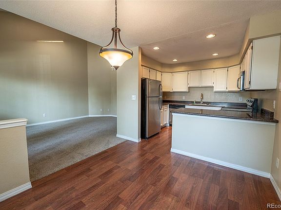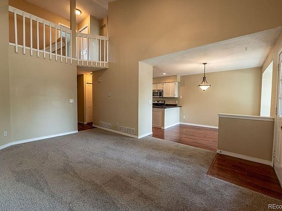 Here it is! Move in ready! This home has it all! Inviting and Open, with vaulted ceilings! A private patio! two private owners suites upstairs. New carpet, new paint, and remodel bathrooms. Central air conditioning. Open kitchen with stainless steel appliances and eating space. Full basement thats fully finished including a 3/4 bathroom could be an additional private bedroom/teen suite or a great addition rec room. Abundance of storage throughout and an attached two car garage! Views of downtown Denver! Community pool, tennis courts and mature landscaping. Minutes to I-25 for an easy commute. Very private, the home only connects to one other unit, the other unit is connected to the garage. Come see it today!