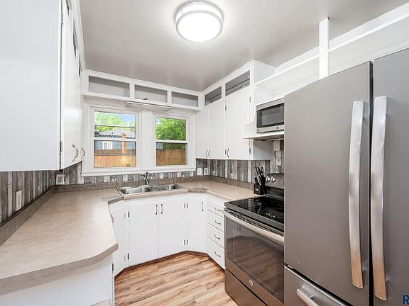 Home in central Sioux Falls w/a corner lot. The main level includes an open floor plan w/the spacious living room open to the dining room & the kitchen w/appliances included. Also, on the main level a large bedroom w/double closet, 2nd bedroom w/single closet, and a full bath. The lower level includes a utility room w/a 1/2 bath, a family room & a bedroom w/wall closet. Property includes a fenced in backyard w/shed, a single stall garage, mature trees & landscaping.