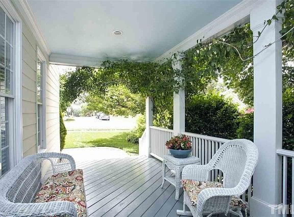 LOVELY CUSTOM DJF BUILDER home in Cameron Park! CHARLESTON STYLE DOUBLE FRONT PORCHES. Graceful columns, lots of TRIM, refinished HARDWOODS DOWN. QUARTZ counters in kitchen & powder room. TILED Backsplash. NEW STAINLESS STEEL APPLIANCES! Master has TREY CEILING & Master Bath has TILED SHOWER & floor along w/ JETTED tub. Privacy abounds w/ this LUSHLY landscaped FENCED yard! Perfect for ENTERTAINING w/spacious deck & patio area! Close to Downtown Apex, schools, shopping & dining. The Peak of 'GOOD LIVING!
