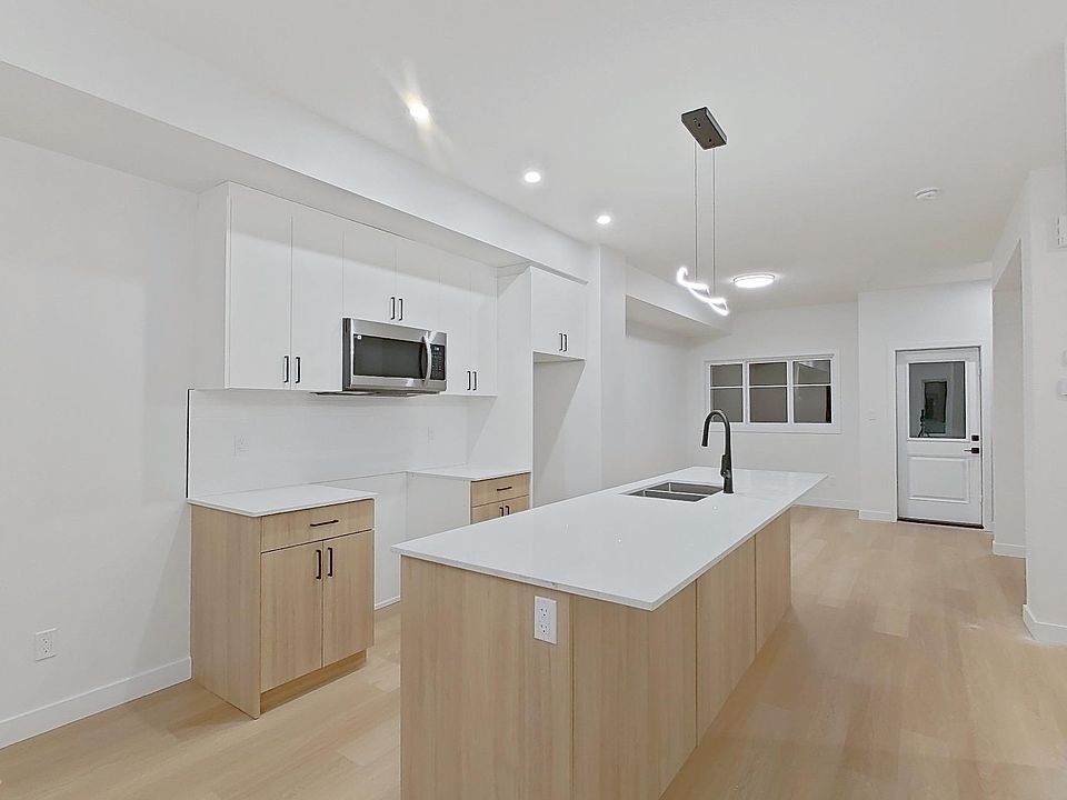 STUNNING 3-STOREY TOWNHOME IN KESWICK OFFERING MODERN DESIGN, PREMIUM FINISHES & A FUNCTIONAL MULTI-LEVEL LAYOUT! The MAIN FLOOR features a BRIGHT DEN / HOME OFFICE with access to a FRONT PATIO plus an ATTACHED GARAGE. The SECOND FLOOR delivers an OPEN-CONCEPT LIVING AREA, a GORGEOUS KITCHEN with QUARTZ COUNTERTOPS, STAINLESS STEEL APPLIANCES, UPGRADED HARDWARE, and a DINING AREA that flows onto your PRIVATE BALCONY. The THIRD FLOOR offers a LARGE PRIMARY BEDROOM with a 3-PC ENSUITE & WALK-IN CLOSET, along with TWO ADDITIONAL BEDROOMS and a 4-PC BATH—perfect for FAMILY LIVING. Enjoy LUXURY VINYL PLANK FLOORING, LED LIGHTING & a HIGH-EFFICIENCY FURNACE. Located in one of SW Edmonton’s MOST SOUGHT-AFTER COMMUNITIES—minutes to WINDERMERE SHOPS, SCHOOLS, PARKS, DINING & EASY ACCESS to ANTHONY HENDAY. MULTIPLE UNITS AVAILABLE—A FANTASTIC OPPORTUNITY TO OWN A NEW, LOW-MAINTENANCE HOME IN SOUTHWEST EDMONTON!