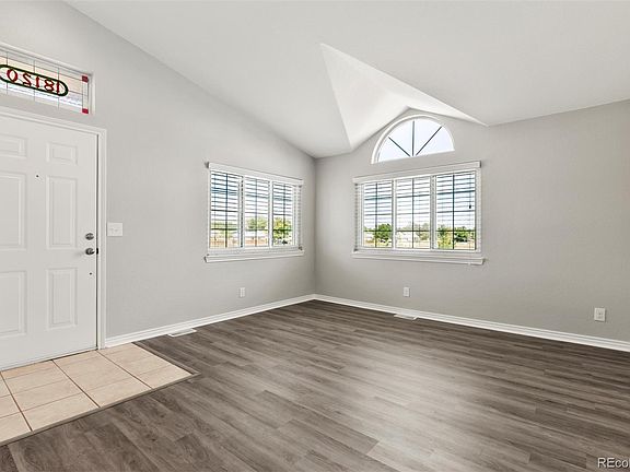 This spectacularly situated end unit ranch style townhouse has everything you have been looking for. Starting with the location this home is perfect! It backs to walking trails with a green belt, close to the new Aurora central recreation center, shopping, dining and public transportation! As you enter your new home you are greeted with towering vaulted ceilings, tons of natural light, new paint, new flooring throughout as well as updated fixtures and hardware. The main floor has 2 bedrooms, an open style living room, dining room, a kitchen with eat in area, a laundry with the washer and dryer included and 3 separate outdoor areas. The main living room opens up to a private balcony and it is further complimented by an updated fireplace surround. There are 2 bedrooms upstairs with one of them being the main floor master bedroom which has its own deck, a spacious walk in closet and an en-suite bathroom. The other bedroom could be used as an office with sliding doors opening up to the fenced in backyard. Downstairs the basement is fully finished with an additional bedroom, a large flex space that is pre-wired for home audio and lots of storage. The only thing missing is you!