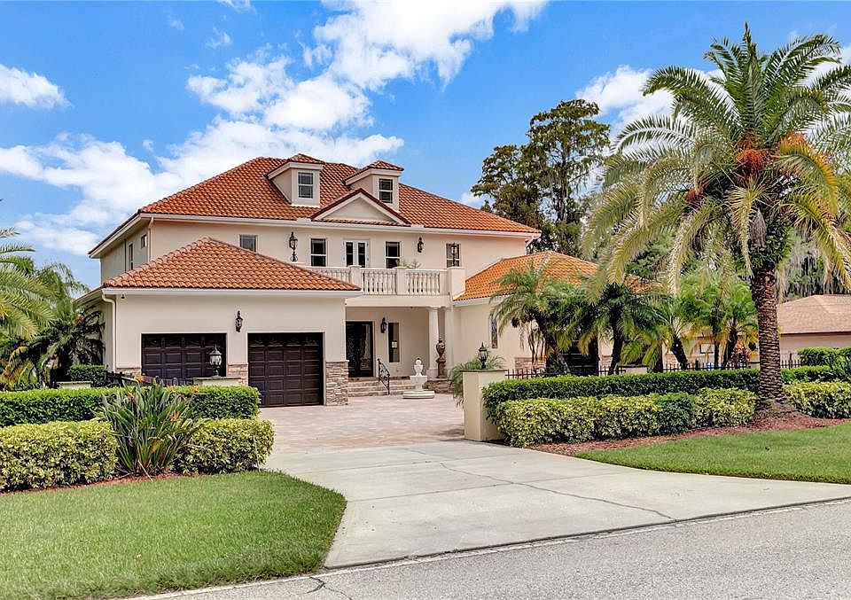 BEST VIEW on LAKE KEYSTONE! Step into the lakefront lifestyle you've been dreaming of and enjoy unmatched water views at every turn! Main House features 4 Bedrooms & 5 Baths, 5,264 sf of well-appointed living space AND an additional private 400 sf GUEST SUITE w/1 BR 1 Bath, kitchenette, and its own sundeck! Coveted Steinbrenner school district! This stunning residence has all of the top-of the line finishes you'd expect, including imported Italian cabinetry, double layer granite counters, luxurious onyx inlays over stone fireplace & on stairway, chef's kitchen w/professional grade appliances, relaxing spa-like bathrooms with spa jetted tubs & rain head showers, abundant screened balconies, outdoor entertaining & living area for entertaining & everyday living, not to mention the SUPERIOR CONSTRUCTION of POURED CONCRETE walls! Enjoy 2 Master Suites, one on ground floor, the other one on 2nd floor. Additional features include luxurious marble floors, energy efficient windows and sliders, deep crown molding throughout, a private bathroom for every guest room, and two laundry rooms! Four-car garage! Ample Parking for guests! Outside you'll find dream entertaining space with an OUTDOOR KITCHEN, sparkling pool & spa package w/travertine pavers, impeccably designed Pool Bath, boat dock w/lift, expansive covered sitting area off boat house for star gazing & jumping into the lake. PERFECT POSITIONING on LAKE KEYSTONE affords unmatched full lake views. Ask for the complete list of home features and upgrades. This home is the ULTIMATE entertaining house with NO HOA! Look no further, call today for your private showing. Just 20 minutes to Tampa Airport, 25 minutes to Clearwater and downtown Tampa -- yet worlds away from all your cares!