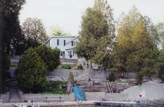 Enjoy living year round or just your summers on a private penninsula in a unique old world setting with beautiful 50 ft cedar trees towering above you. The landscaped yard retaining walls are inhanced by a unique old world stone and mortar walkway which leads to the lake. The 2,220 ft home features beautiful views from every window with a total of 126 ft of frontage on the recreational side of the lake and 47ft on the backside. Enjoy sitting on either side of the lake. The front side includes two large piers which connect to a 14 X 43 ft cement deck. Backside enjoy the nature on a smaller pier. The home includes a floor to ceiling brick fireplace in the livingroom and a Ben Franklin in the family room. We have lived here for 20 years and have loved every minute of it!